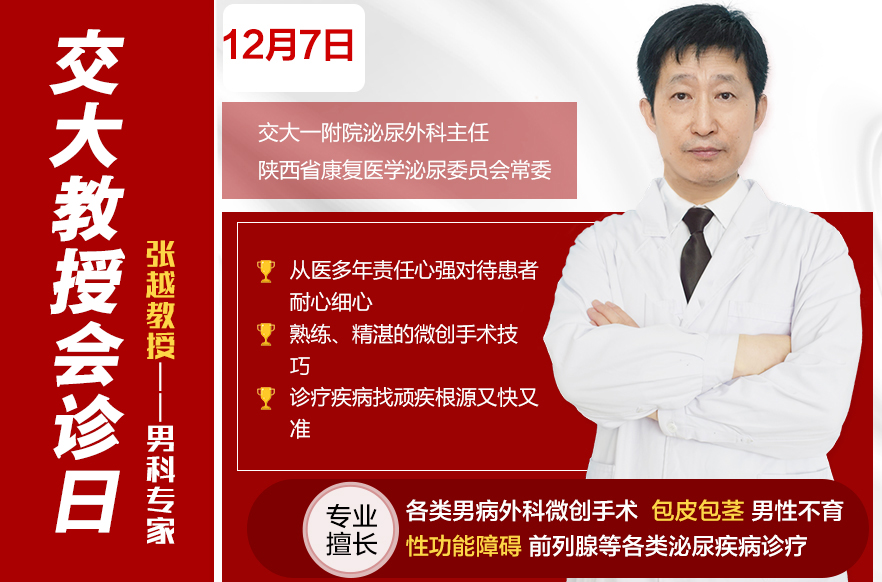 为更好地满足各类男性疾病患者(包括阳痿、早泄、前列腺炎、包皮龟头炎、睾丸炎等男性疾病患者)的健康需求,陕西省老医协生殖医学医院于2022年12月7日特邀交大教授张越来开展“专家会诊周暨精准治疗男性疾病活动。
