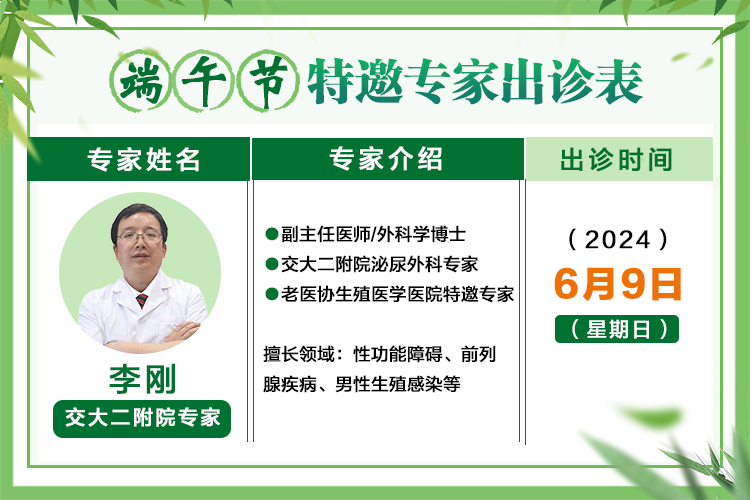 2024年6月9日, 陕西省老医协生殖医学医院 特邀 交大二附院专家 李刚教授 在端午节为大家守护男性健康。 李刚教授 介绍: 副主任医师/科学博士,陕西省老医协生殖医学医院 ...[详情]