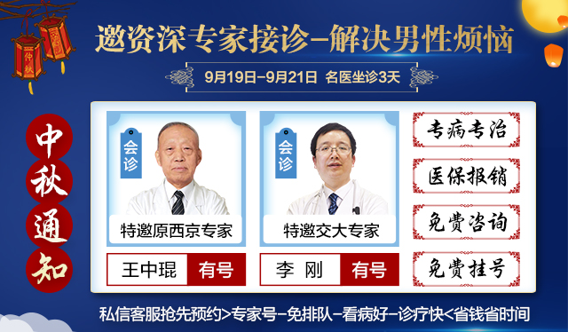 西安老医协男科为了缓解男性患者看病难、预约难,看专家更难的现象,值此中秋佳节,医院邀请原西京教授王中琨、交大博士李刚来我院会诊。 很多男性患病后去医院就诊的过程当 ...[详情]